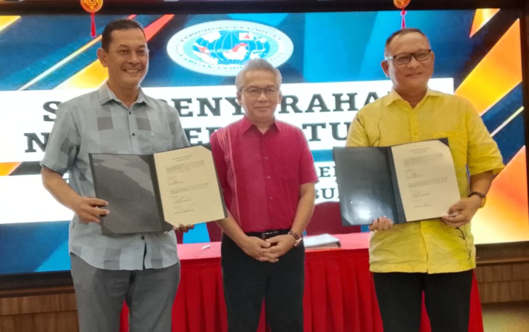 Mohd Husni menyaksikan Majlis Serah Tugas antara Sukuran (kiri) dan Rithuan.