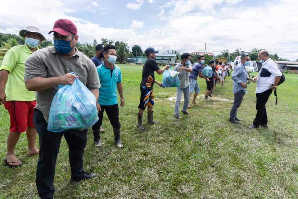 BUNG MOKTAR RADIN..Kerajaan negeri hulurkan bantuan bakul makanan kepada penduduk Pitas yang terputus perhubungan.