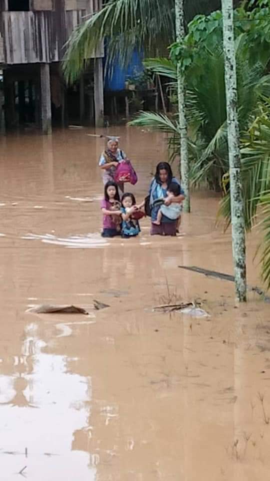 KENINGAU:Sebanyak 14 buah rumah di Kampung Dalit Stesen kira-kira 40 kilometer dari sini ditenggalami banjir lebih kurang jam 5.00 pagi tadi.