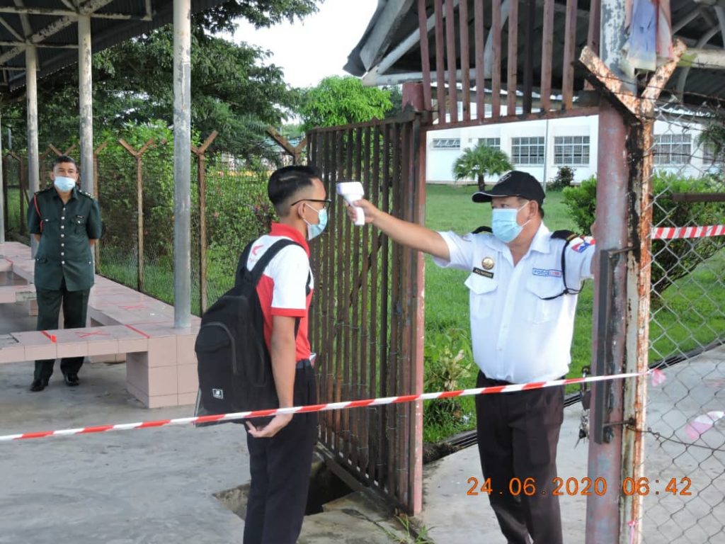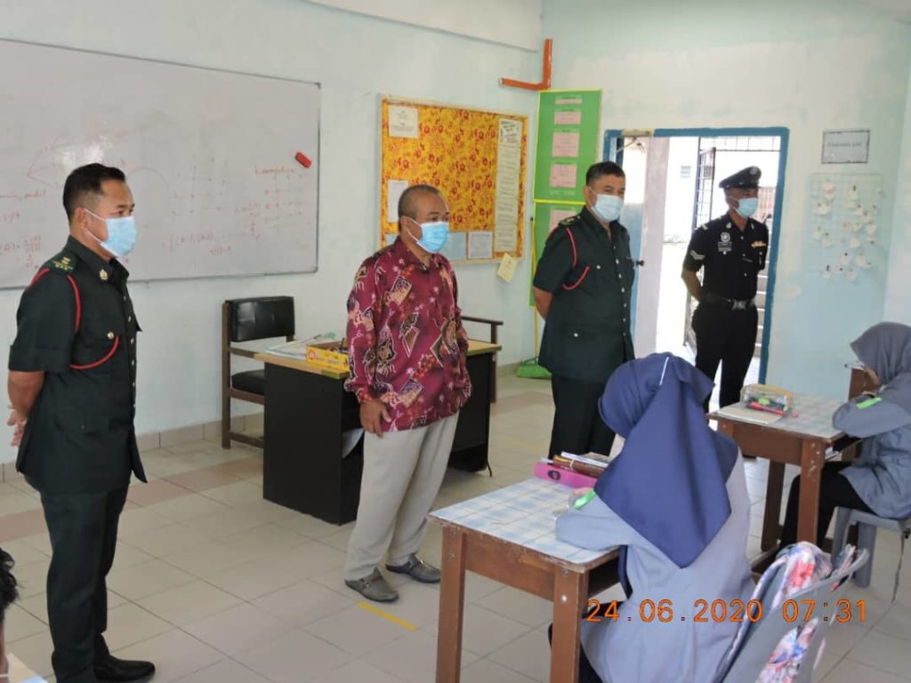 Tinjauan di sekolah berkenaan mendapati, kesemua pelajar mematuhi prosedur operasi standard (SOP) yang dikeluarkan Kementerian Pendidikan Malaysia yang telah disusun atur lebih awal oleh pihak sekolah termasuk memastikan penjarakan sosial 1-meter di dalam klas