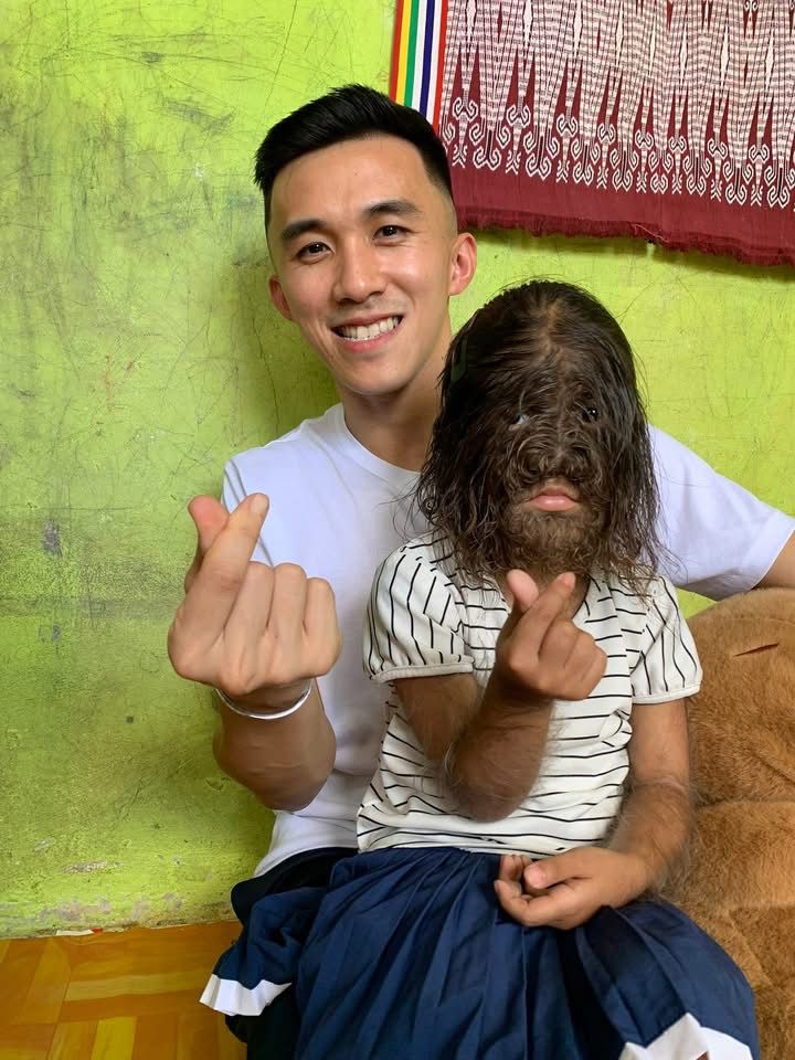 Adrian Edy bersama adik Missclyen yang menghidap penyakit Congenital Generalized Hypertrichosis (CGH) sejak lahir.