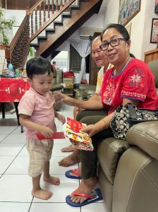 Gan atau lebih senang dengan panggilan Ali menerangkan setiap tahun keluarganya akan menyambut Perayaan Tahun Baru Cina di rumah kediamannya di Kampung Muhibbah. Beliau yang pada asalnya dari Mentakab Pahang kemudian berkahwin dengan seorang perempuan tempatan berbangsa Dusun. Mereka dikurniakan 4 orang anak dan 8 orang cucu. Ke semua anak mereka telah berkeluarga. Seperti pada amalannya, semua anak dan cucunya akan diberikan angpau sebagai suatu keberkatan hidup dan nasib yang sentiasa dimurahkan rezeki sepanjang tahun. Beliau bagaimanapun juga akan memberikan angpau kepada kanak-kanak lain khususnya keluarga di pihak isterinya.