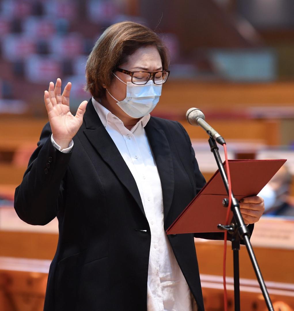 Christina Liew taking her oath as Api Api State Assemblywoman at the swearing-in ceremony of elected representatives at the State Legislative Assembly building on Friday. -Photo by Bernama