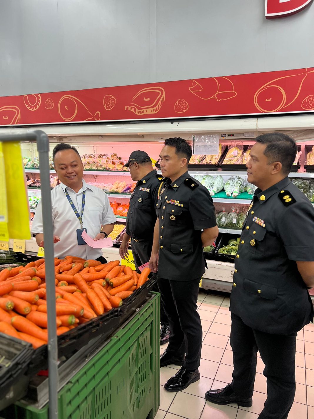 Fadzly (tengah) bersama pasukan penguat kuasa KPDN Cawangan Keningau meninjau dan memantau harga barangan di sebuah pasar raya di Keningau.