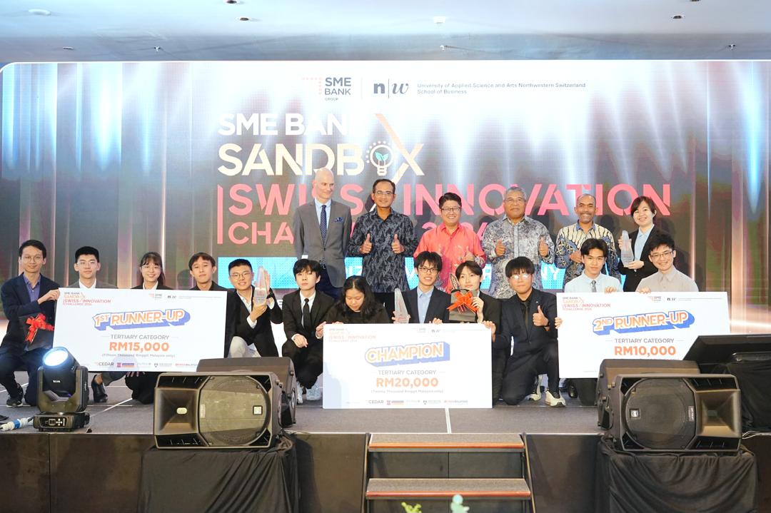 Ewon (tengah) merakam gambar bersama penerima hadiah Program SME Bank Sandbox Swiss Innovation Challenge 2024