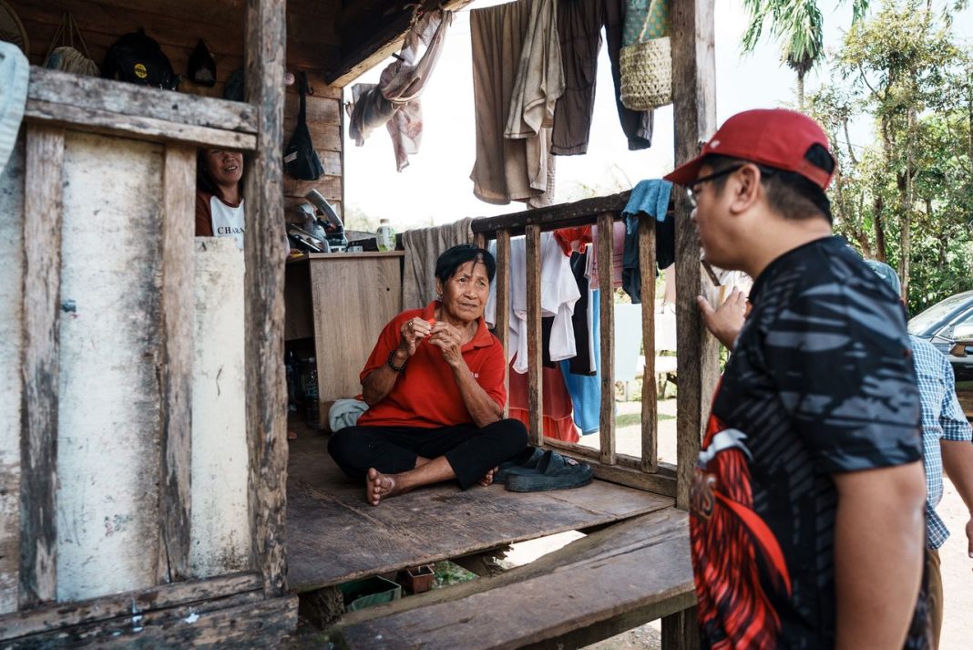Ewon menyantuni salah seorang penduduk semasa lawatan itu