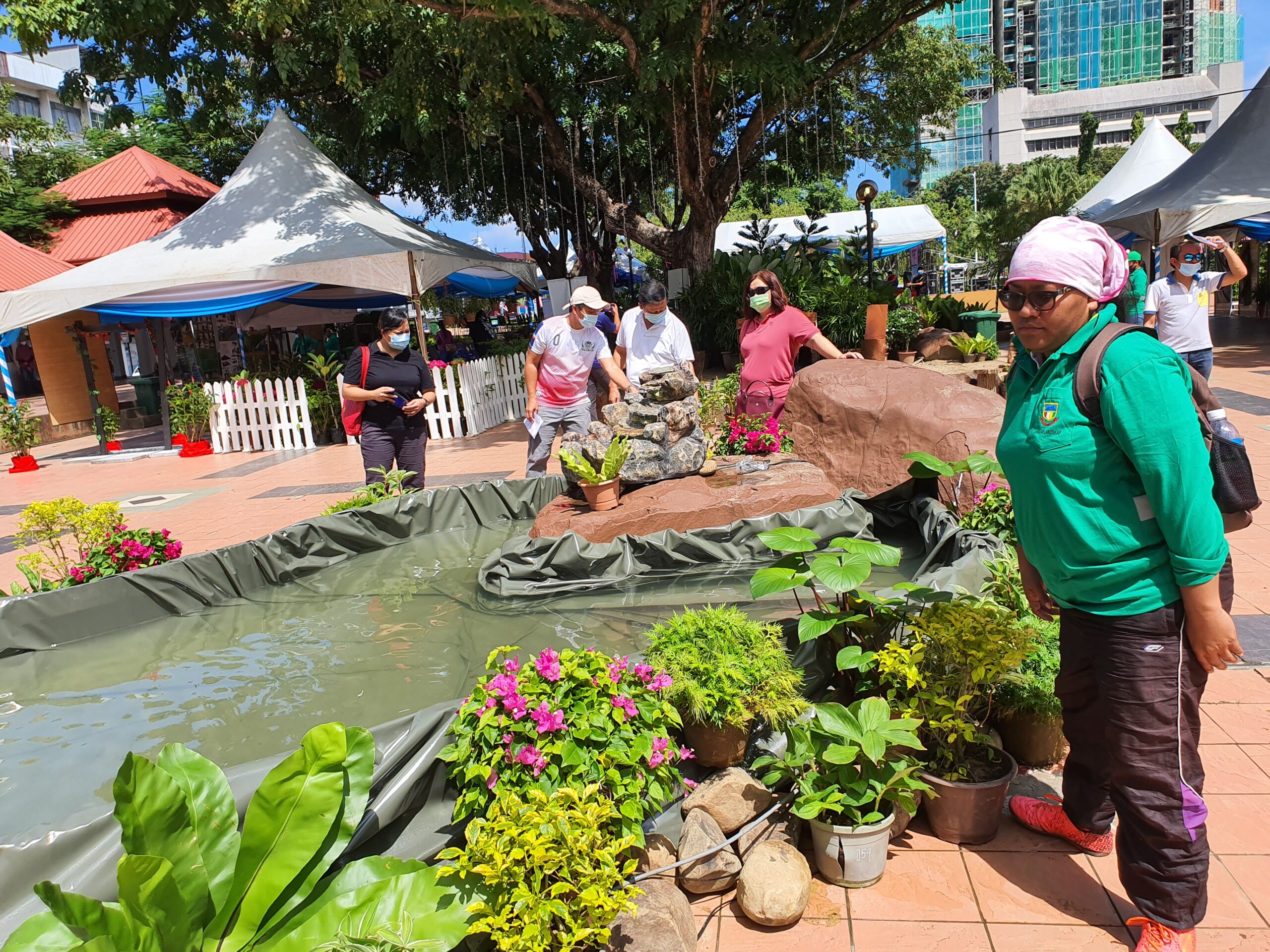 FINISHING TOUCHES...Kota Kinabalu City Hall (DBKK) was making final preparations on Sunday for the launching of the Five-Year Kota Kinabalu Landscape Beautification Blueprint (2021-2025) by Chief Minister Datuk Seri Mohd Shafie Apdal today (Monday) at Taman Chong Tien Vun.