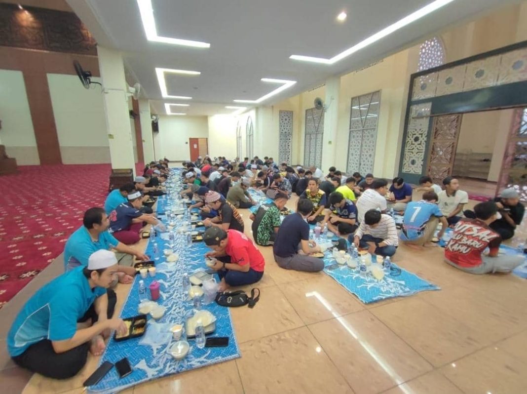 Para pelajar menikmati juadah iftar yang disumbangkan JHEP di Masjid UMS