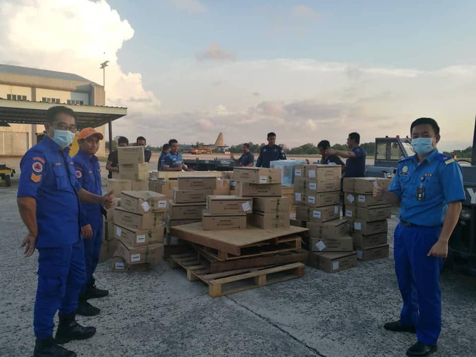 Semua barangan tersebut diterima pada petang Jumaat melalui penghantaran khas menggunakan pesawat Chalie Tentera Udara Di Raja Malaysia (TUDM) dari Subang ke Kota Kinabalu Sabah sebelum mendarat dan tiba di Lapangan Terbang Labuan kira-kira jam 5.30 petang.