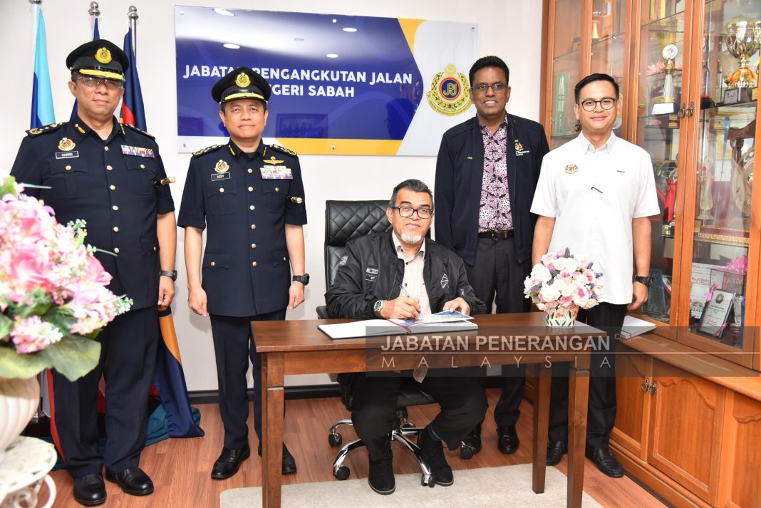 Turut hadir, Ketua Setiausaha Kementerian Pengangkutan Malaysia, Datuk Jana Santhiran Muniayan, Ketua Pengarah Pengangkutan Jalan Malaysia, Datuk Aedy Fadly Ramli dan Pengarah JPJ Sabah, Harris Ali. – Penerangan–
