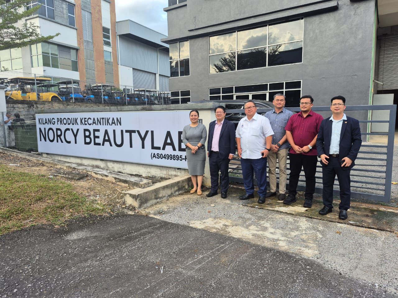 Dari kiri: Norcy, Ewon, Thinas dan yang lain, merakam gambar di hadapan kilang Norcy Beauty Lab,l di Nilai Negeri Sembilan.