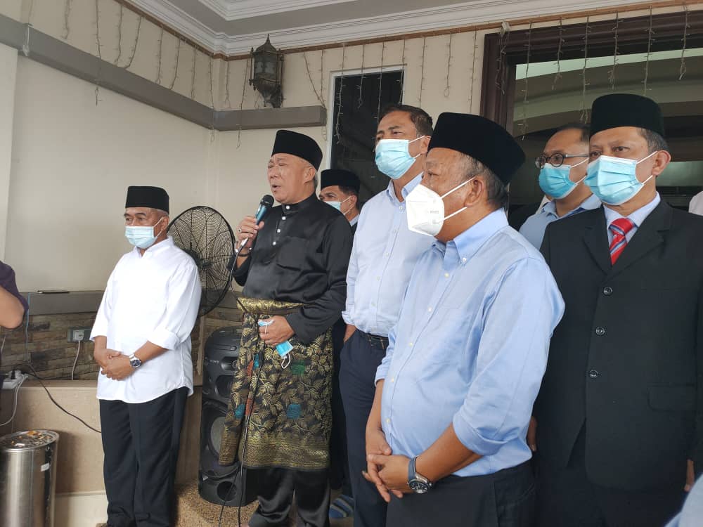 Bung Moktar bersama Adun Karambunai, Datuk Yakub Khan (kanan) dan Adun Sukau, Datuk Jafry Ariffin berucap di hadapan penyokongnya di kediamannya di Luyang