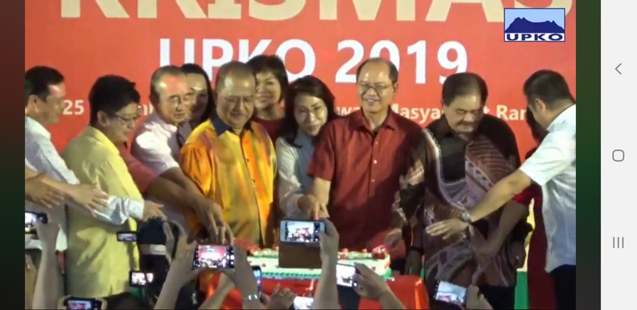 Kemuncak acara diserikan dengan upacara memotong kek Krismas beramai-ramai yang diketuai Madius, disusuli ucapan Krismas beberapa pemimpin tertinggi UPKO.