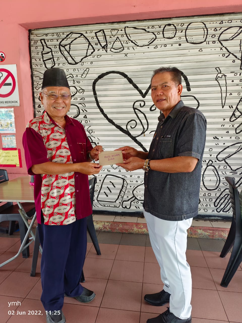 Haji Yazid (kiri)mewakili Robert menyampaikan sumbangan kepada Johari.
