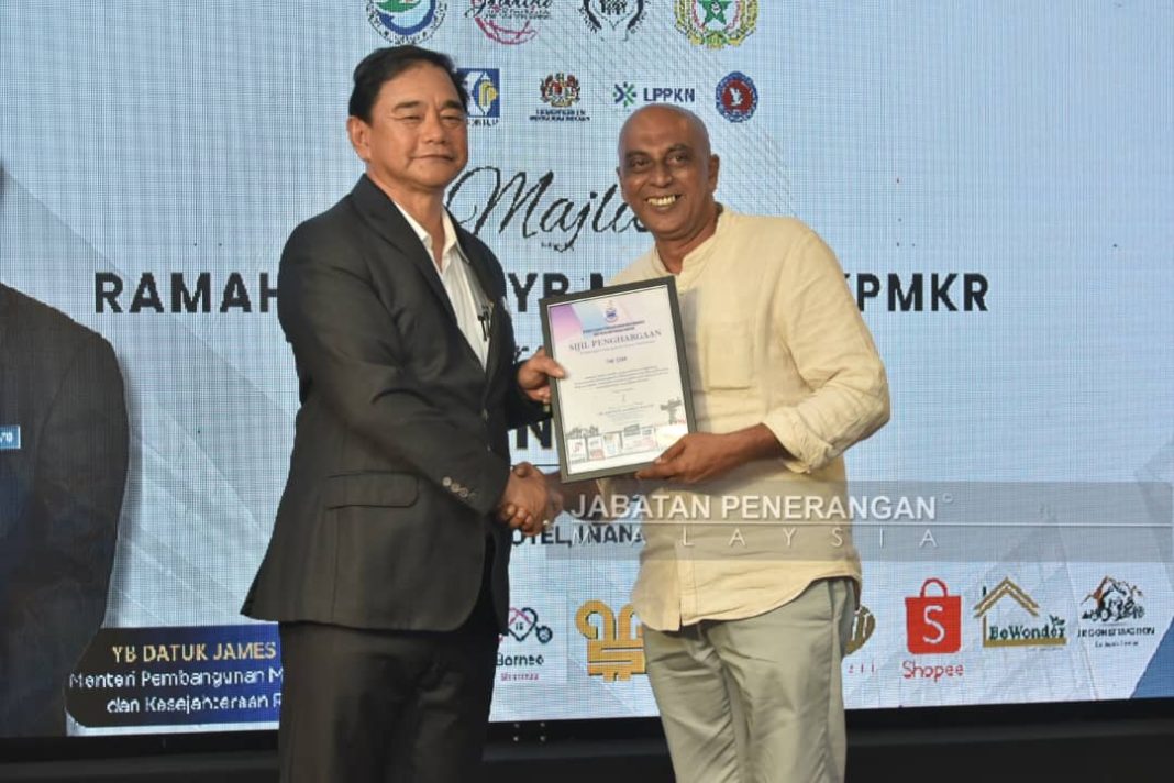 James (kiri) menyampaikan sijil penghargaan kepada pengamal media di Sabah. (kiri) Datuk Mugu, Presiden Wartawan Sabah (SJA)