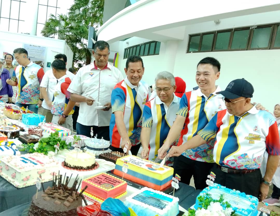 Lo bersama dif dif kehormat memotong kek sempena Pelancaran Kempen Kibar Bendera Wilayah Persekutuan peringkat Labuan.