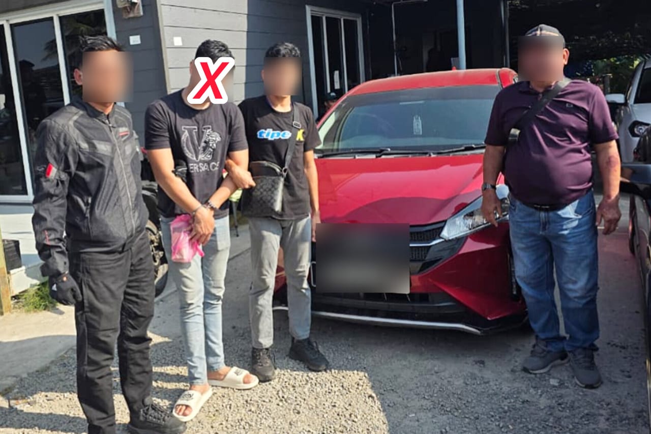 Suspek (bertanda X) ditahan oleh polis dalam Op Tapis selepas dipercayai terlibat dalam kegiatan pengedaran dadah, dengan rampasan lebih 600 gram ganja dalam serbuan di Putatan, semalam.
