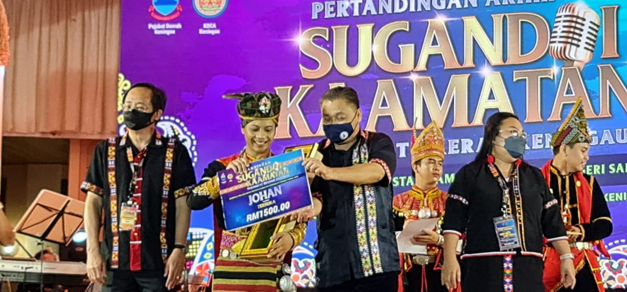 KENINGAU:Maxwell Walter Cyril dinobatkan sebagai juara pertandingan Sugandoi Kaamatan Daerah Keningau yang berlangsung di Pusat Kraftangan Sabah malam tadi.