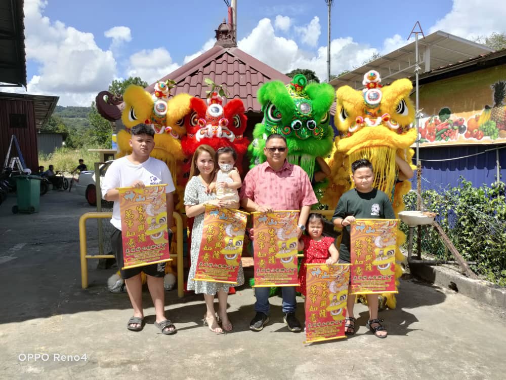 Katanya ‘pada hari ini saya bersama-sama keluarga menyantuni Persatuan Tarian Singa dan Naga Kinabalu Ranau. Dalam masa yang sama kami telah menyempurnakan gimik penyerahan sumbangan dan Majlis 开光 yang bermaksud Upacara Penyucian atau pun Upacara Permulaan yang baharu bagi Kepala Singa dan gendang untuk persatuan’.