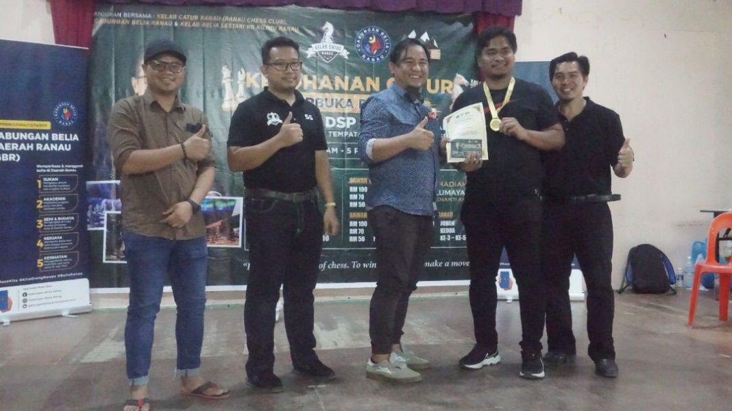 RANAU: Nazir Najarin muncul johan Kejohanan Catur Terbuka Ranau Piala Datuk Seri Panglima Masidi Manjun yang berlangsung di Dewan Kampung Kilimu pada 4 dan 5 Jun lalu.