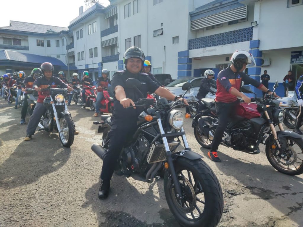 DSP Simiun Lomudin mengetuai konvoi bermotosikal bermula dari IPD Ranau menuju ke Kg Poring.