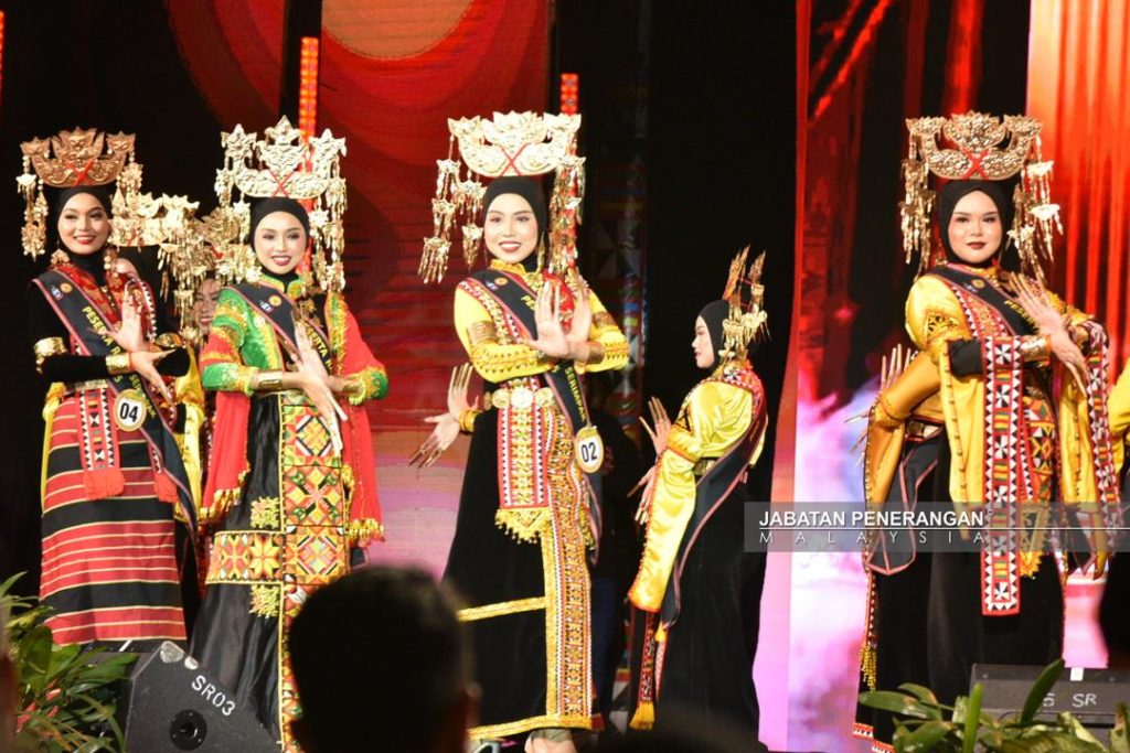 Peserta Ratu Serimpak memperagakan busana tradisi suku kaum Bajausama.