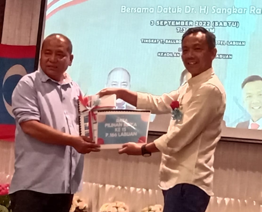SERAH…. simsudin menyerahkan Data PRU ke 15 bagi P166 Labuan kepada Dr. Sangkar.