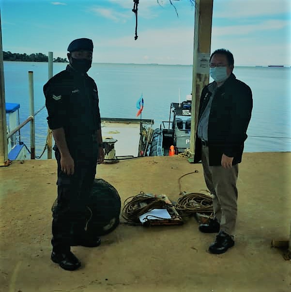 “Bagaimanapun hasil daripada pemeriksaan lanjut polis marin telah berjaya merampas satu unit pukat ‘Trinett’ bersama kayu pemberat  yang ditinggalkan di kawasan berkenaan. Peralatan yang dirampas dianggarkan bernilai RM1,400”|katanya dalam satu kenyataan media di sini, hari ini.
