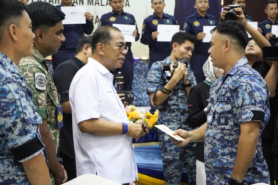 Mohamed Khaled menyampaikan sumbangan. Kebajikan kepada anggota TUDM yang berdepan dengan penyakit kronik.