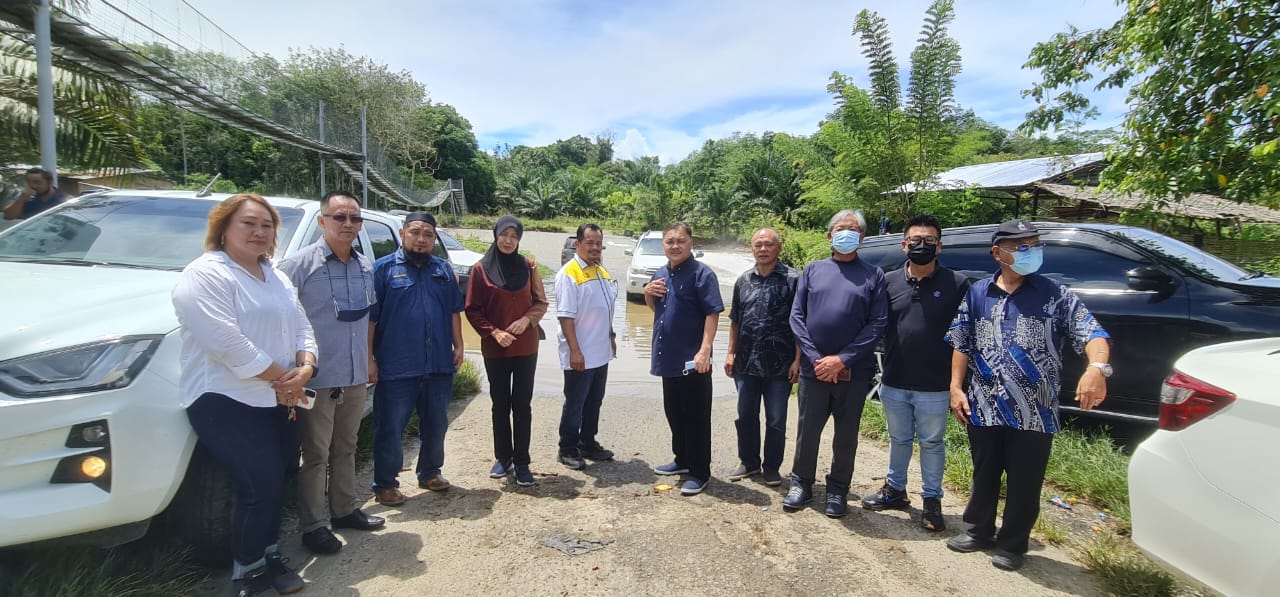 Robert dan rombongan semasa melawat lokasi pembinaan jambatan di Kampung Tangkungon.