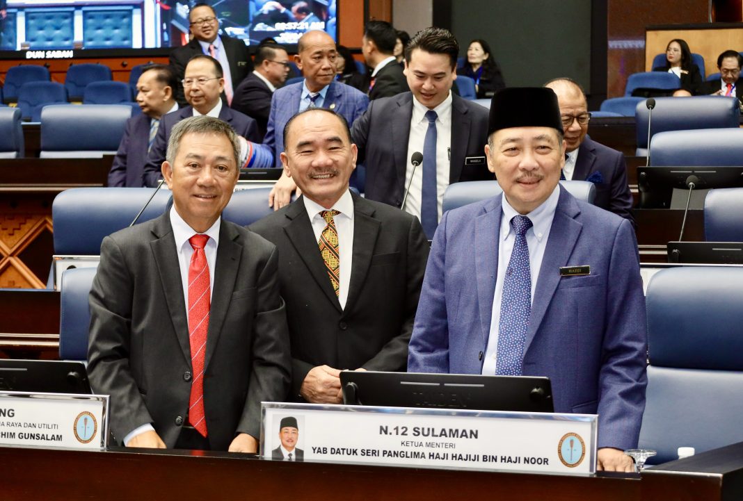 Ketua Menteri Sabah, Datuk Seri Panglima Haji Hajiji Haji Noor, bersama sebahagian Ahli Yang Berhormat semasa Mesyuarat Pertama Penggal Kedua Dewan Undangan Negeri (DUN) Sabah ke-17, pada Isnin.