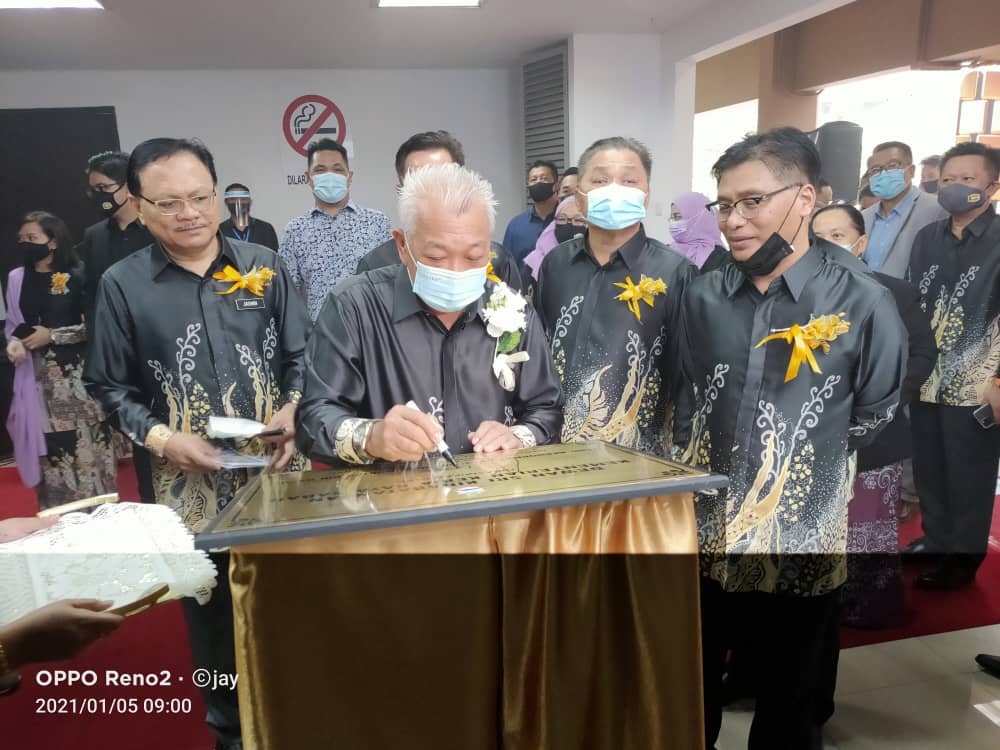 Hadir sama Setiausaha Kerajaan Negeri Datuk Seri Panglima Sr Haji Safar Untung,dua Pembantu Menteri Kerja Raya Datuk Robert Tawik,Datuk Limus Jury,Setiausaha Tetap Kementerian Kerja Raya Haji Mohd Jasmin Julpin dan Pengarah JKR Sabah Ir Haji Ali Ahmad Hamid.