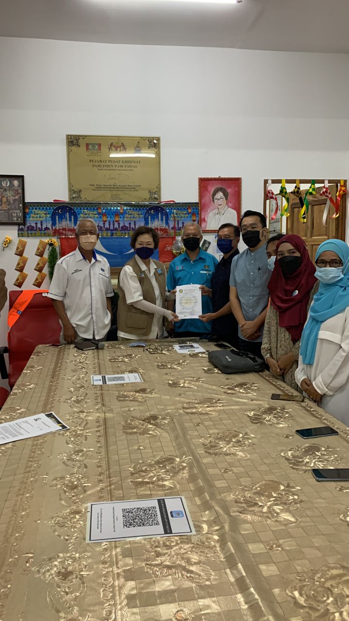 Photos : Liew (2nd left) receiving an official letter from Desmond, witnessed by the Tawau Parliamentary Chief Liaison Officer, Fung Thin Yein (3rd left) and others.
