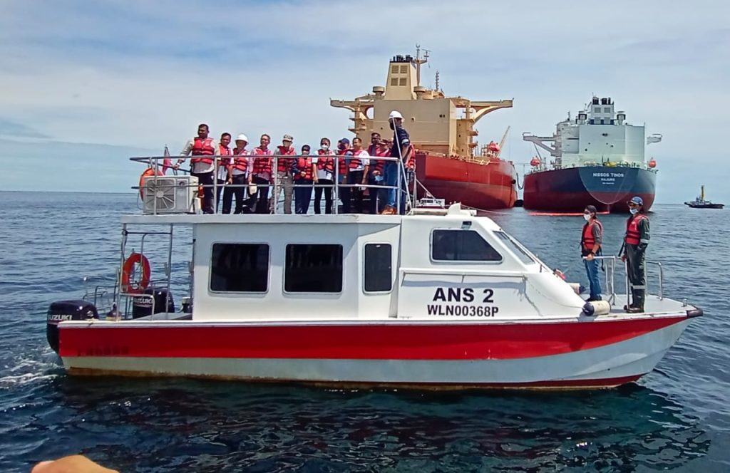 2.PEMIMPIN tempatan bersama pihak pengurusan tertinggi Victoria STS ketika menyaksikan pengoperasian pemindahan kargo minyak mentah dari kapal ke kapal.