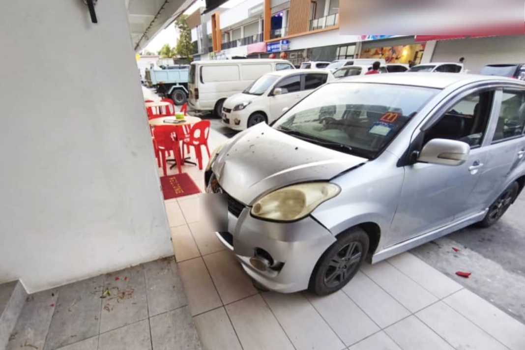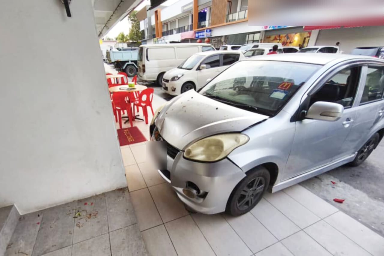“Akibat pelanggaran itu, pemandu kenderaan yang dilanggar dipercayai tersalah menekan pedal minyak sehingga menyebabkan kenderaan hilang kawalan lalu naik ke kaki lima sebuah premis makanan,” katanya.