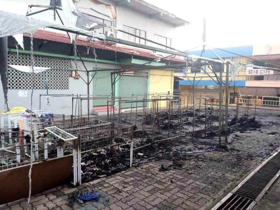 Dalam kejadian kira-kira jam 3 pagi yang berlaku di hadapan pejabat Bersatu (bekas pejabat Umno), pekan Ranau, khemah dan jualan hangus terbakar.