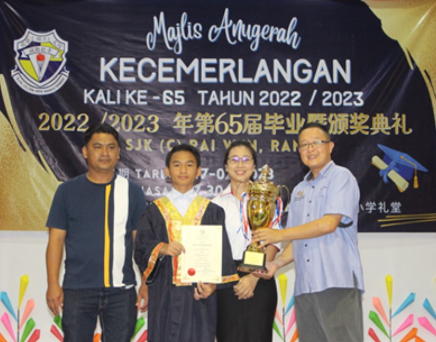 Wyldann sebagai penerima Anugerah Tokoh Murid 2022 SJKC Pai Wen Ranau